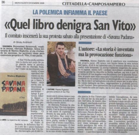 Articolo pubblicato sul Mattino di Padova di oggi, mercoledì 9 dicembre. E il bello è che nelle edicole della zona c’era perfino la locandina che richiamava al “paese in rivolta”. Cose che capitano anche se, a ben guardare, è tutta pubblicità come insegnavano i Kiss ai tempi d’oro. Certo che, nonostante tutto, resto sempre basito di fronte a simili esempi di povertà intellettuale. Ma solo qui in Veneto succedono cose di questo tipo? Boh…