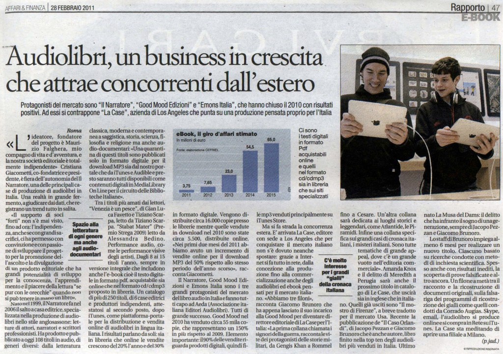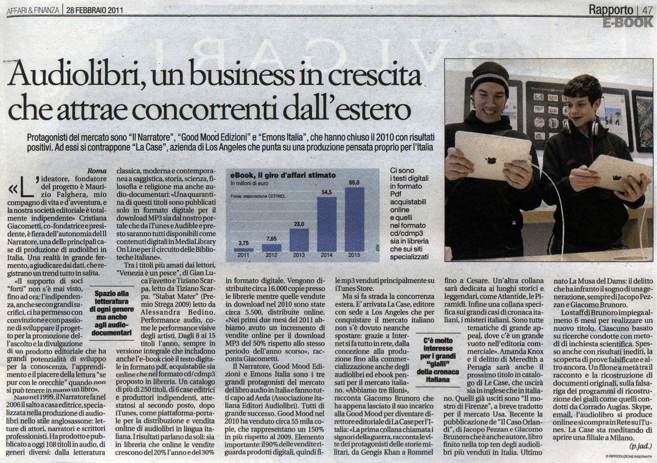 Articolo pubblicato a pag. 47 di Repubblica Affari e Finanza di lunedì 28 febbraio 2011 a firma di Paola Jadeluca.